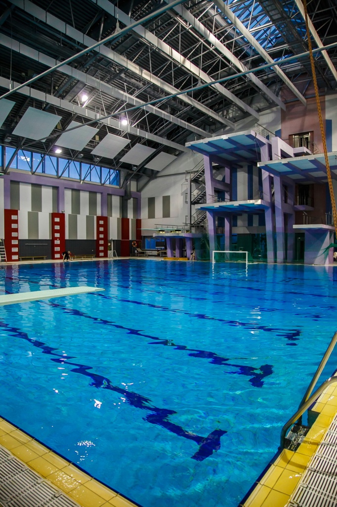 Для подъема спортсменов на прыжковые вышки смонтирован лифт. Платформы вышек покрыты специальным нескользящим покрытием. Для проведения качественного учебно-тренировочного процесса бассейн оборудован системой «воздушной подушки».